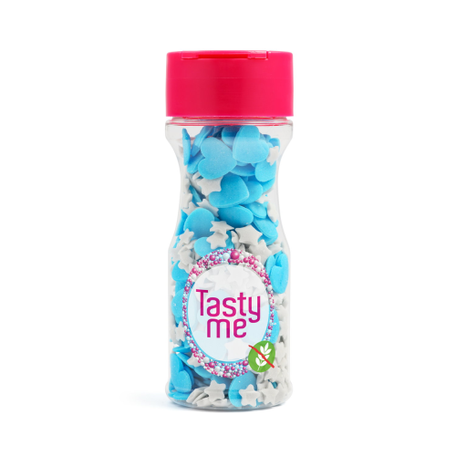 Breng je baksels tot leven met deze dromerige mix van schattige blauwe hartjes en zilveren sterretjes! Perfect om taarten, cupcakes, koekjes en desserts een speelse en toch stijlvolle uitstraling te geven. Of het nu gaat om een verjaardag, een babyshower of een winterthema, deze sprinkles maken er in één keer een feestje van.